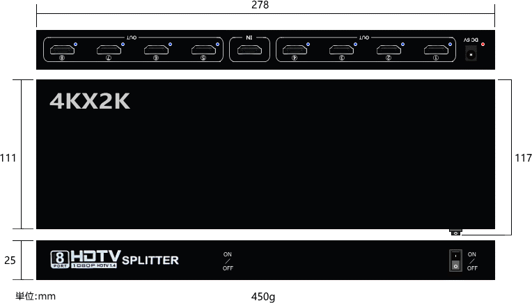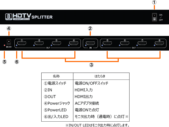 | ポート | HDMIタイプA、入力×1、出力×8 | |