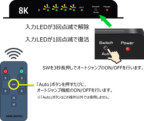 | Switch | Switch…入力切替え / Auto…オートジャンプ有効/無効 |