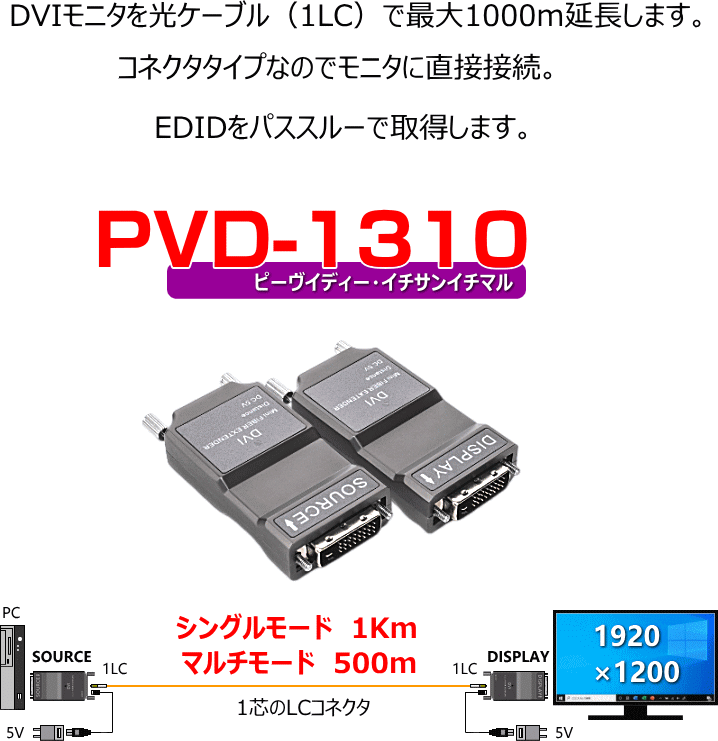 | ポート | DVI-D(DVI24+1pin)、1LC光、給電用micro USB | |