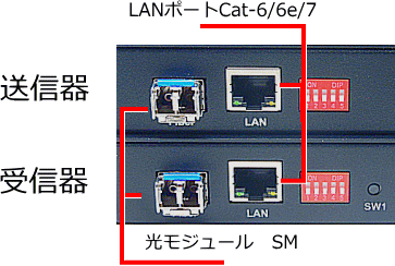 光モジュールとLANポートの二つを搭載し、光ケーブル、LANケーブル、どちらでも延長が可能です。