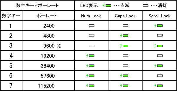 工場出荷時は9600ボーに設定されています。必要に合わせてボーレートの変更をしてください。